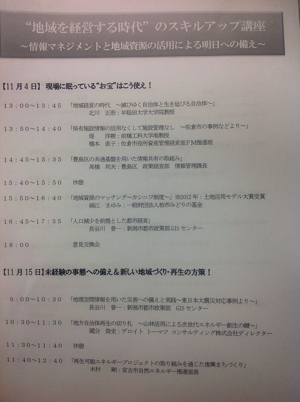 午後から、早稲田大学ファイナンス研究科キャンパスで開催された「地域を経営する時代」のスキルアップ講座〜情報マネジメントと地域資源の活用による明日への備え〜に参加しました。