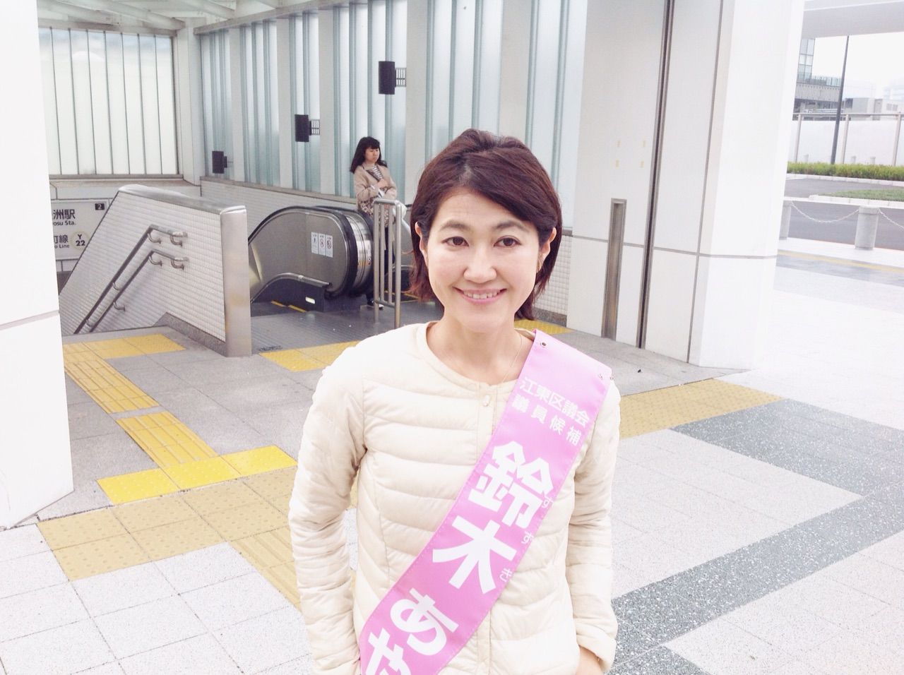 朝は、区議会議員当選以来、毎週ご挨拶をしている豊洲駅のららぽーと側出口にて。