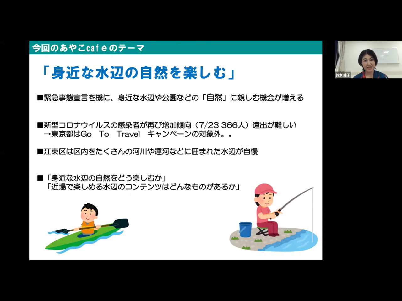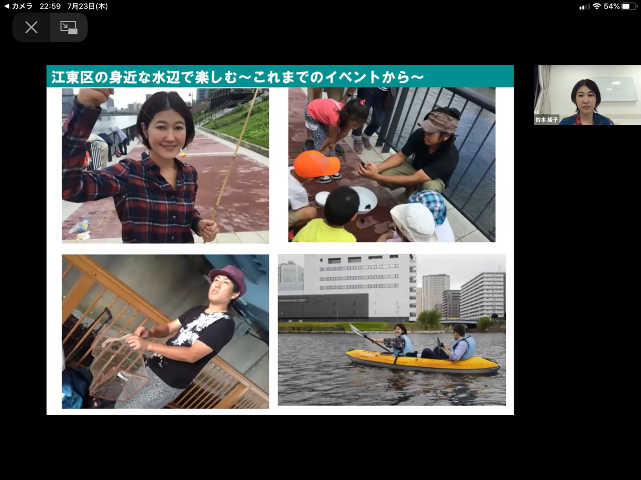 テーマは、「ウィズコロナの江東区の水辺の楽しみ方を考える」