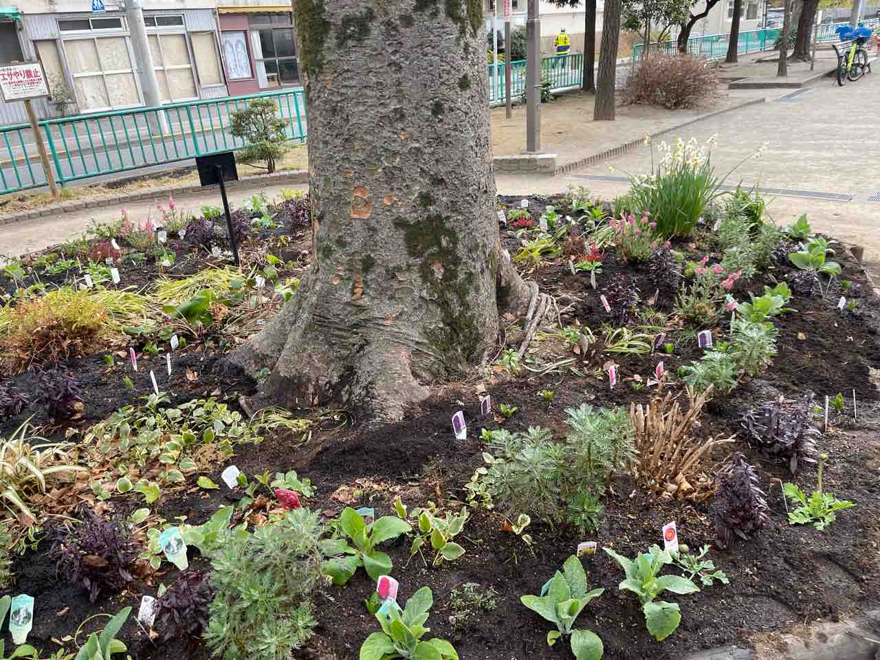今日は豊洲4丁目花だんの会(とよ花の会)でインターン生と花の苗を植えてきました。