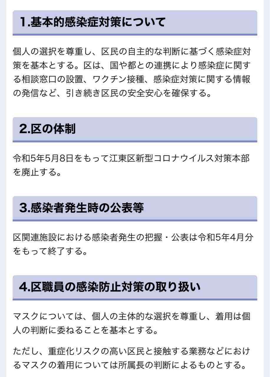 令和5年5月8日をもって江東区新型コロナウイルス対策本部を廃止する。