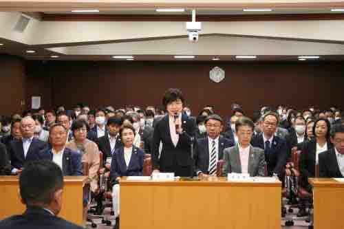 今回の江東区長選挙を経て木村弥生区長挨拶ののち、区長より特別職並びに行政委員の紹介が行われ、あわせて副区長より区幹部職員の紹介がありました。