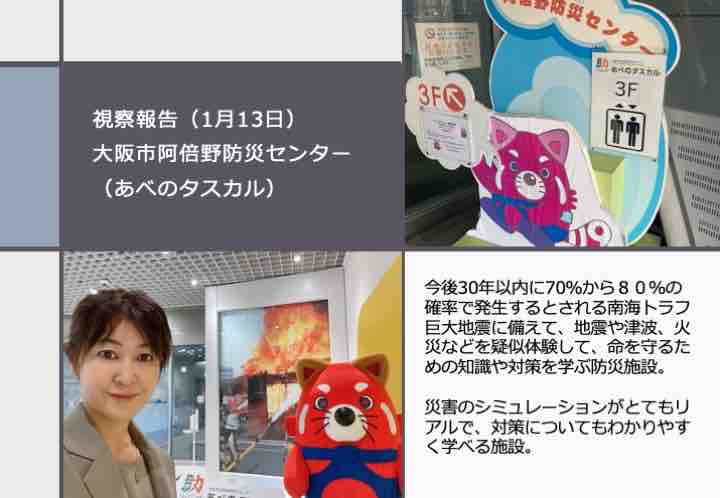 大阪の阿倍野防災センター(あべのタスカル)の視察報告も行いました。